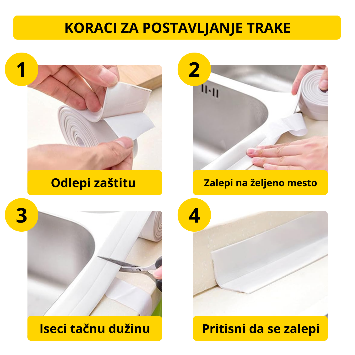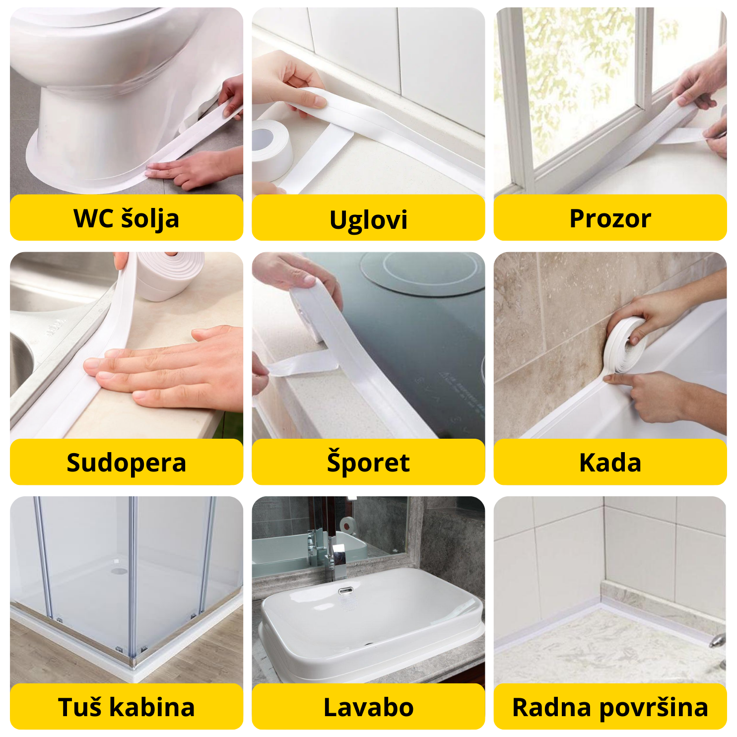 Prekini taj začarani krug! Ova samolepljiva vodootporna traka je napravljena da jednom zauvek zatvori te procepe. Ne treba ti majstor, ne treba ti pištolj za silikon – samo zalepi i rešio si problem godinama unapred.