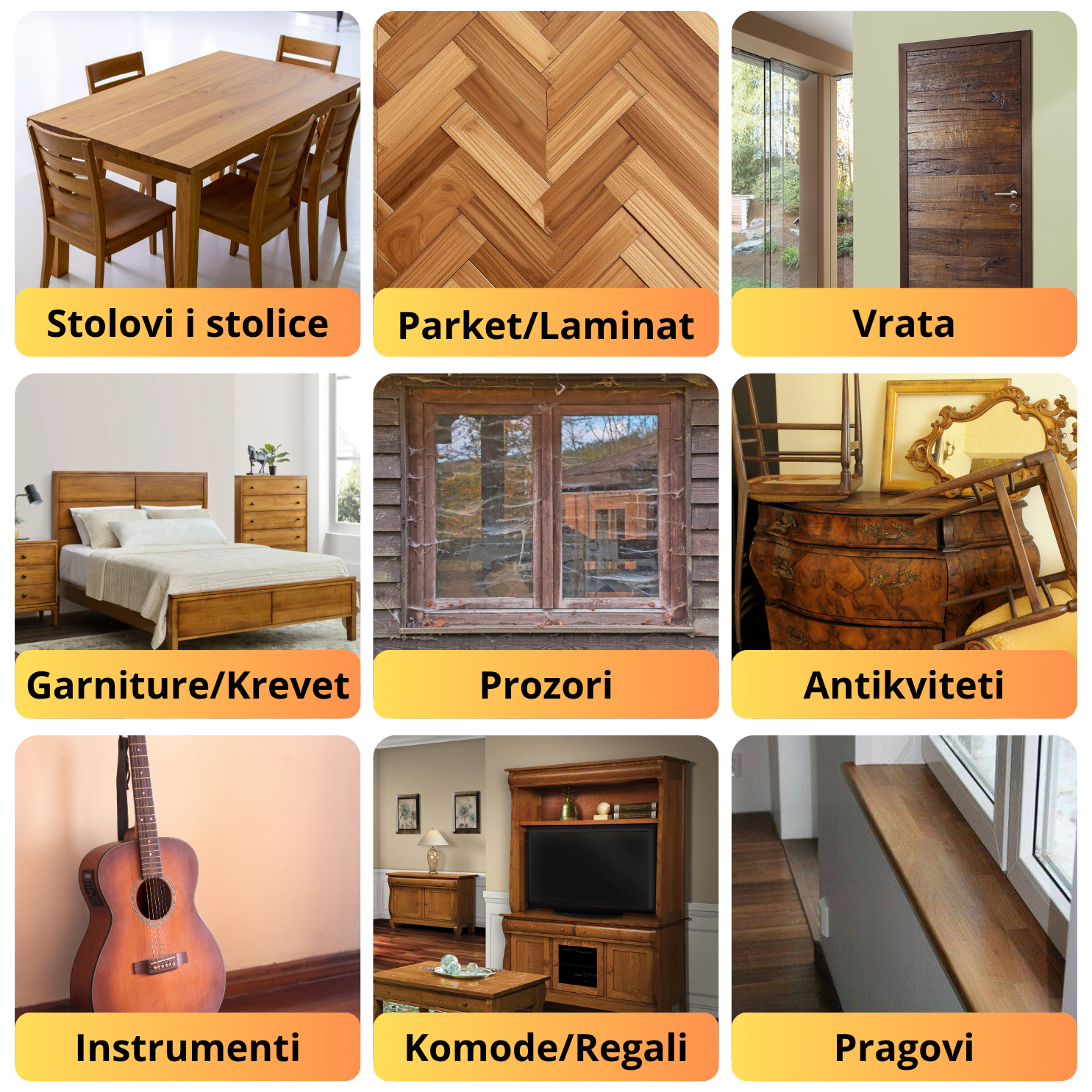Poruči svoj WoodFix set još danas i zaboravi na ogrebotine zauvek. U kompletu dobijaš 6 markera + 6 voskova gratis u svim nijansama drveta. Sve što ti treba da tvoj nameštaj ponovo zablista – u tvojoj ruci, spremno za upotrebu odmah. Ne čekaj da se šteta vidi, spreči je dok je mala.