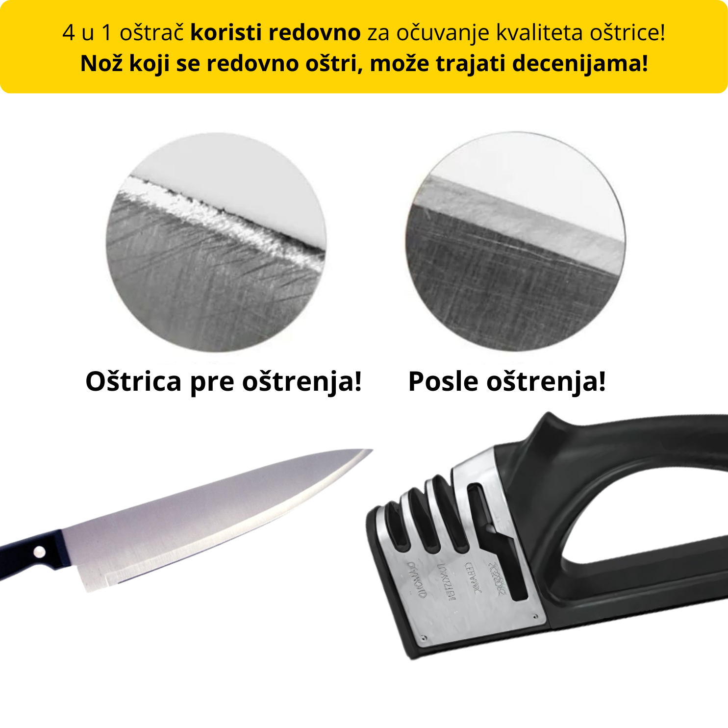 - ★ Brzo i jednostavno – samo nekoliko poteza i svaki nož seče kao nov, bez dodatnih alata ili snage.