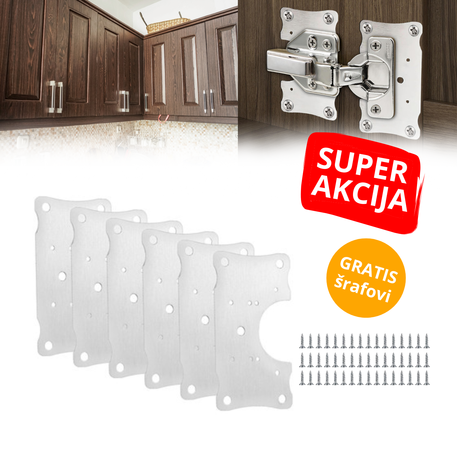 Poruči ojačavajuću metalnu pločicu sa GRATIS šrafovima i zaboravi na viseća vrata i rasklimane šarke. Jedno pakovanje rešava problem odmah, bez skupih popravki i novih delova. Poruči odmah, zalihe brzo nestaju jer je svako želi u kući.