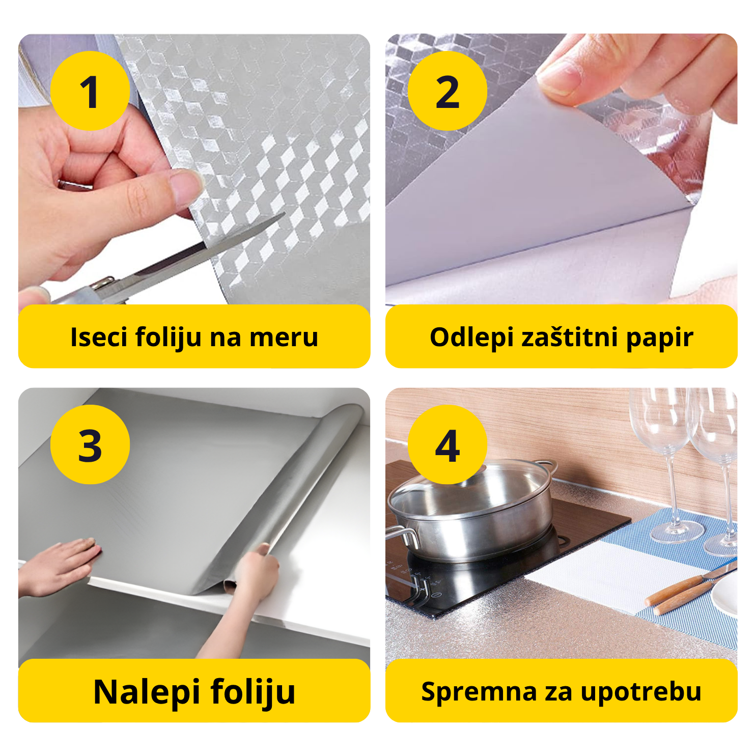 Postavi samolepljivu foliju jednom i zaboravi na prljanje i oštećenja. Čisti se za tren, štiti skupe elemente od vlage i habanja i čuva higijenu tamo gde najviše treba. Poruči odmah i pretvori održavanje iz napornog ribanja u jedno brzo brisanje.