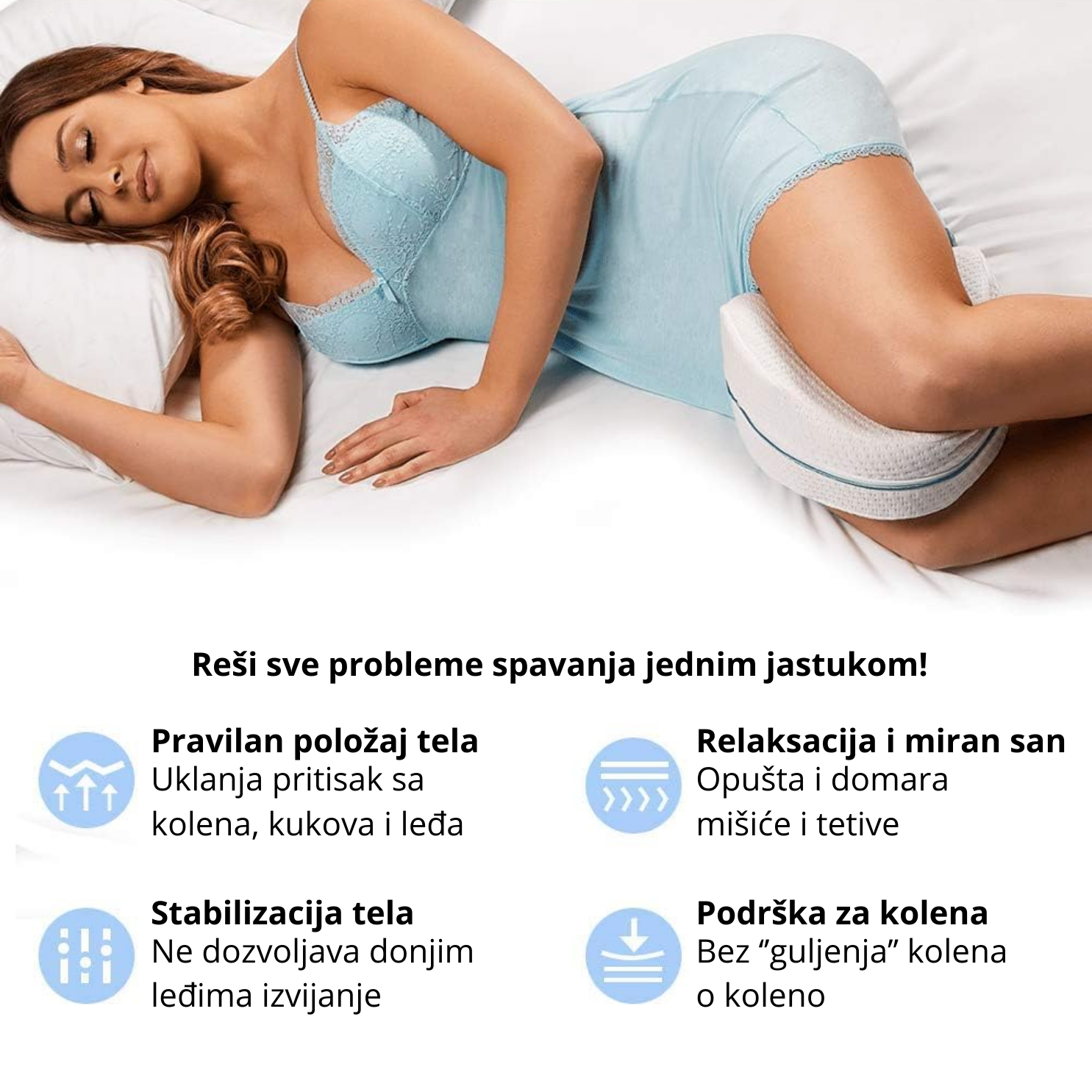 - ★ Pravilno poravnava telo i rasterećuje leđa, kukove i kolena tokom sna.